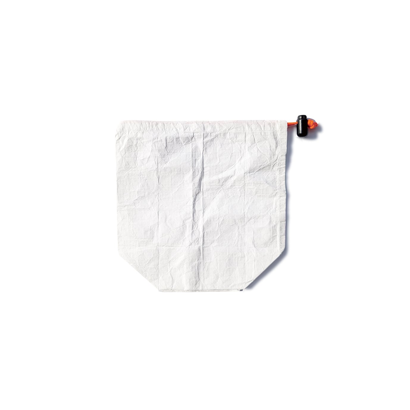 Tyvek(タイベック)は防水・防塵・透湿性を兼ね備えた建築用途の不織布でありながら、驚くほどの軽さと耐久性、そして水を通さず湿気を逃がす特性から、繰り返し使えるグラウンドシートとして長年ULハイカーに親しまれてきました。近年ではMYOG(自作ギア)の素材としても定番化し、その万能さはもはや説明不要です。そんなTyvekの特性を活かして作られたのが、このスタッフサックです。まず手に取って感じるのは、拍子抜けするほどの軽さ。わずか6.2gという重量は、複数持ってもほとんど負担にならず、小分け用サックとして使い分けるのもありですよ。