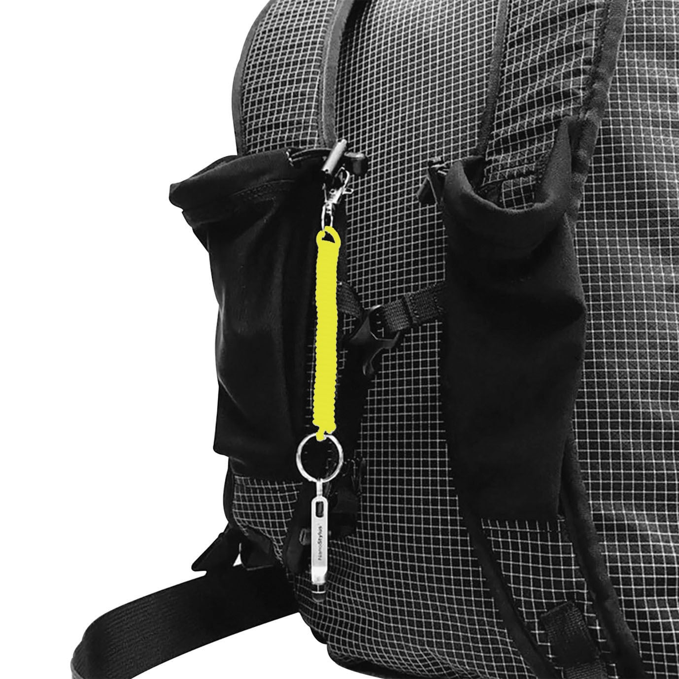 山でも街でも、頻繁に使う小物ほど無くしがちです。例えば鍵、身分証、ホイッスルやライトなど、必要なときに限ってポケットの奥で行方不明になりますよね。そんな小さなストレスを、解決してくれるのがこの伸縮性コイルストラップです。サコッシュやウエストポーチに取り付けておけば、落とす心配がありません。必要なときは引っ張り、使い終われば手を離すと自然に元へ戻るその一連の動作がとても楽です。